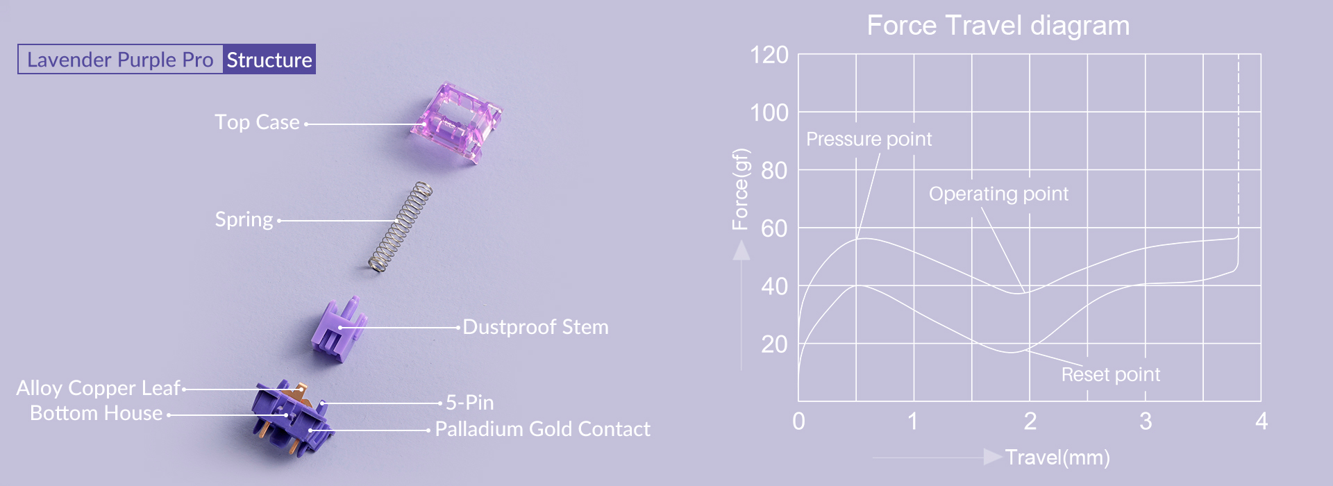 Akko V3 Lavender Purple Pro: una versión mejorada del Lavender Purple, ahora con interruptores de 5 pines y una estructura a prueba de polvo. Además, incorpora lubricación adicional en los rieles, proporcionando una experiencia superior desde el primer uso.